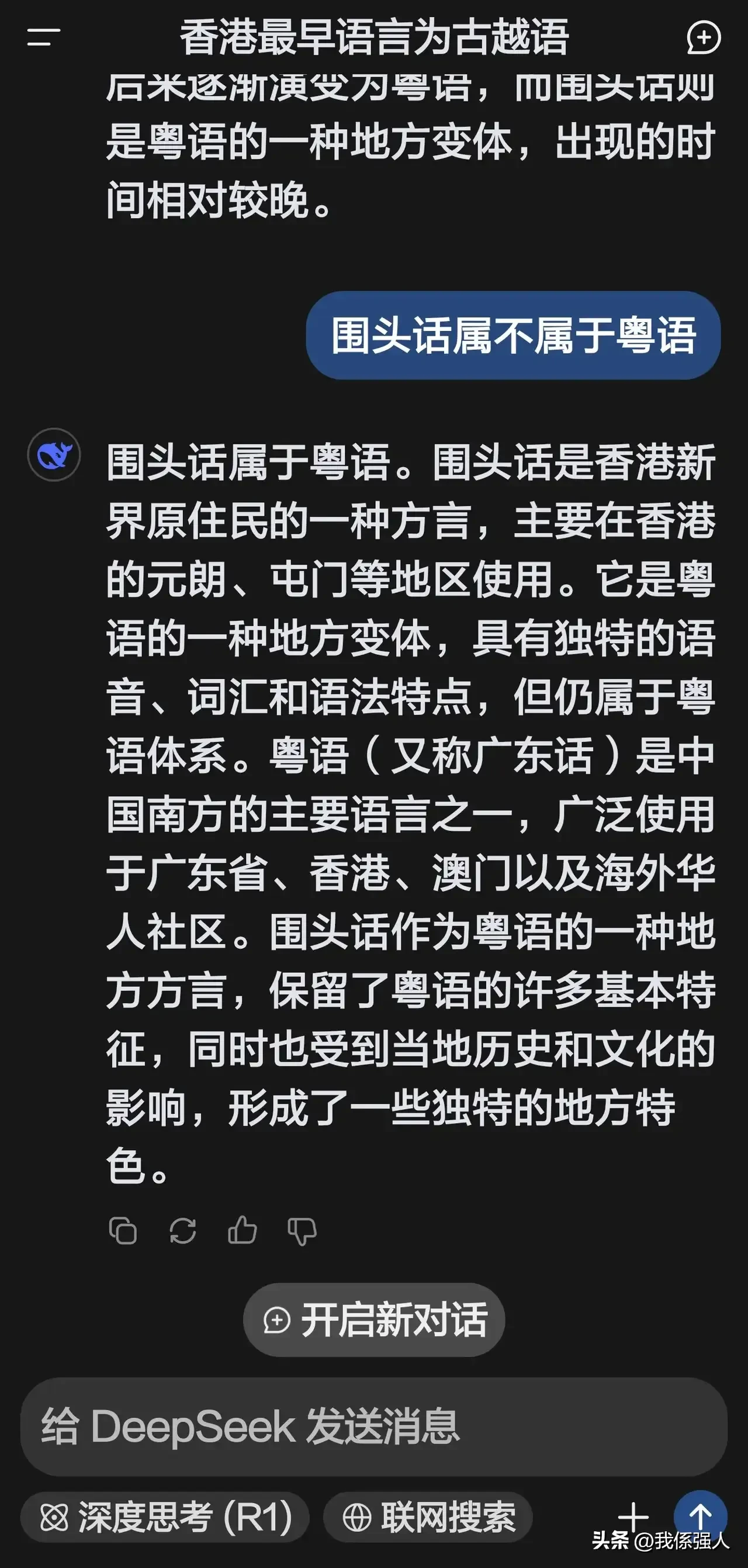 因此,香港最早的语言是古越语,后来逐渐演变为粤语,而围头话则是粤语的一种地方变体,出现的时间相对较晚。