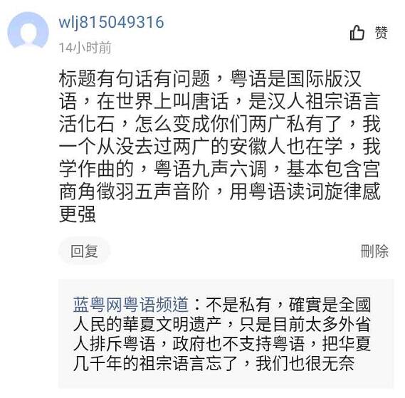 感谢安徽同胞支持粤语!本站驻百家号(目前粉丝11500多人)发布一则资讯,一位安徽同胞在评论区发布良心之言:粤语不属于广东广西私有,是汉族先祖的语言,要支持!为此我们感到十分感动。没错!粤语是中华民族的传统瑰宝,是全国人民共有