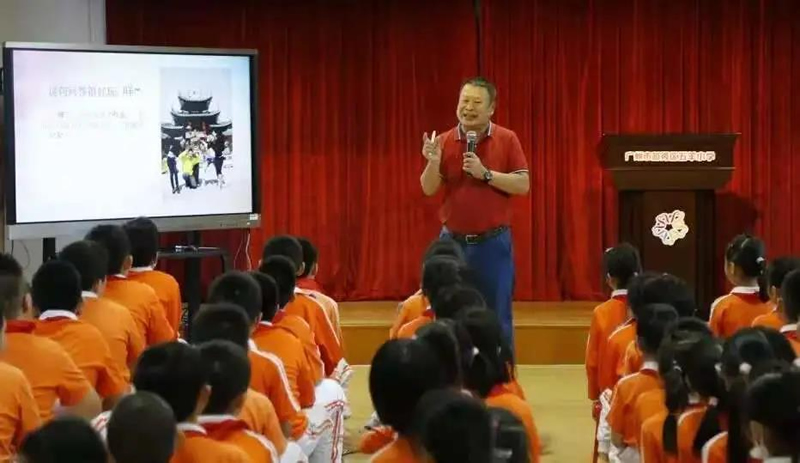 ▲广府文化学者饶原生老师开讲,图源五羊小学