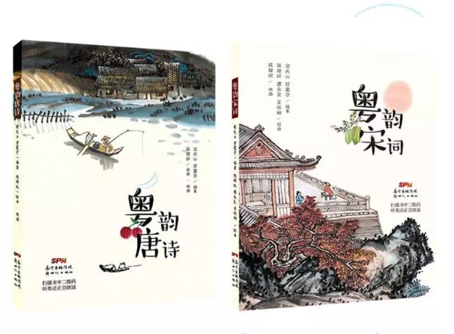 《粤韵唐诗》、《粤韵宋词》两书中所选的均为脍炙人口并适合中小学生入门学习的诗词,由梁天山老师从粤语的音韵、词汇、语法以及岭南历史文化的角度进行赏析,而当中的插画更是陈辉权、谭永良、吴依桐几位老师合力创作的结晶,耗费了无数心血。