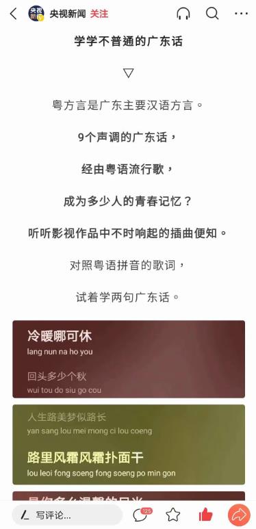 最近网络上出现针对粤菜、粤语等地域攻击言论(比如鼓油王)层出不穷,广府人集体齐心协力进行捍卫传统。央视新闻自媒体也发声了,为广东美食粤菜点赞,呼吁大家「学学不普通的广东话」。作为中国人,要拥护地域和谐,国家团结,共享盛世!