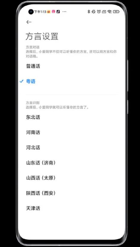 目前小爱同学的对话功能仅支持普通话和粤语,但方言识别功能还支持东北话、 河南话、河北话、山东话(济南)、山西话(太原)、陕西话(西安)以及天津话。