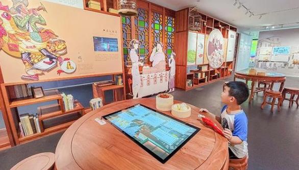 小朋友在岭南方言文化博物馆的仿真场景展区参观。图片来源:佛山日报 周春/摄