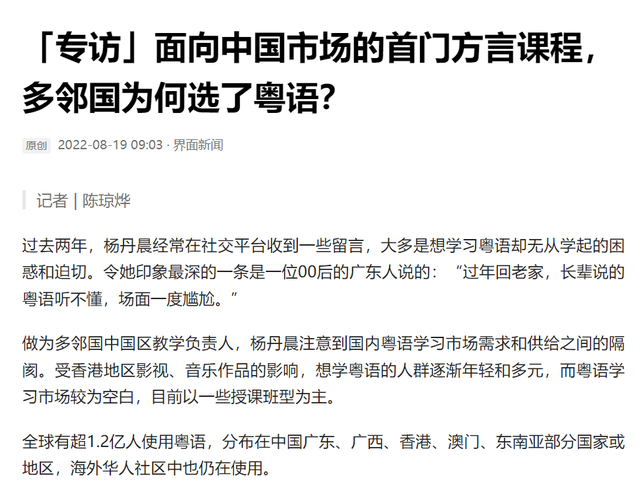 回到文章题目“左边服务业只讲普通话,右边开设粤语研学班”,定是令人颇为无语,但官方或权威对于粤语传承教学还是值得持续提倡的