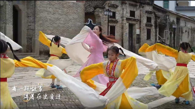 《非遗心,少年梦》描绘沙湾的小朋友们在番禺传统文化里玩耍嬉闹的场景,表达了孩子们传承非遗的决心。