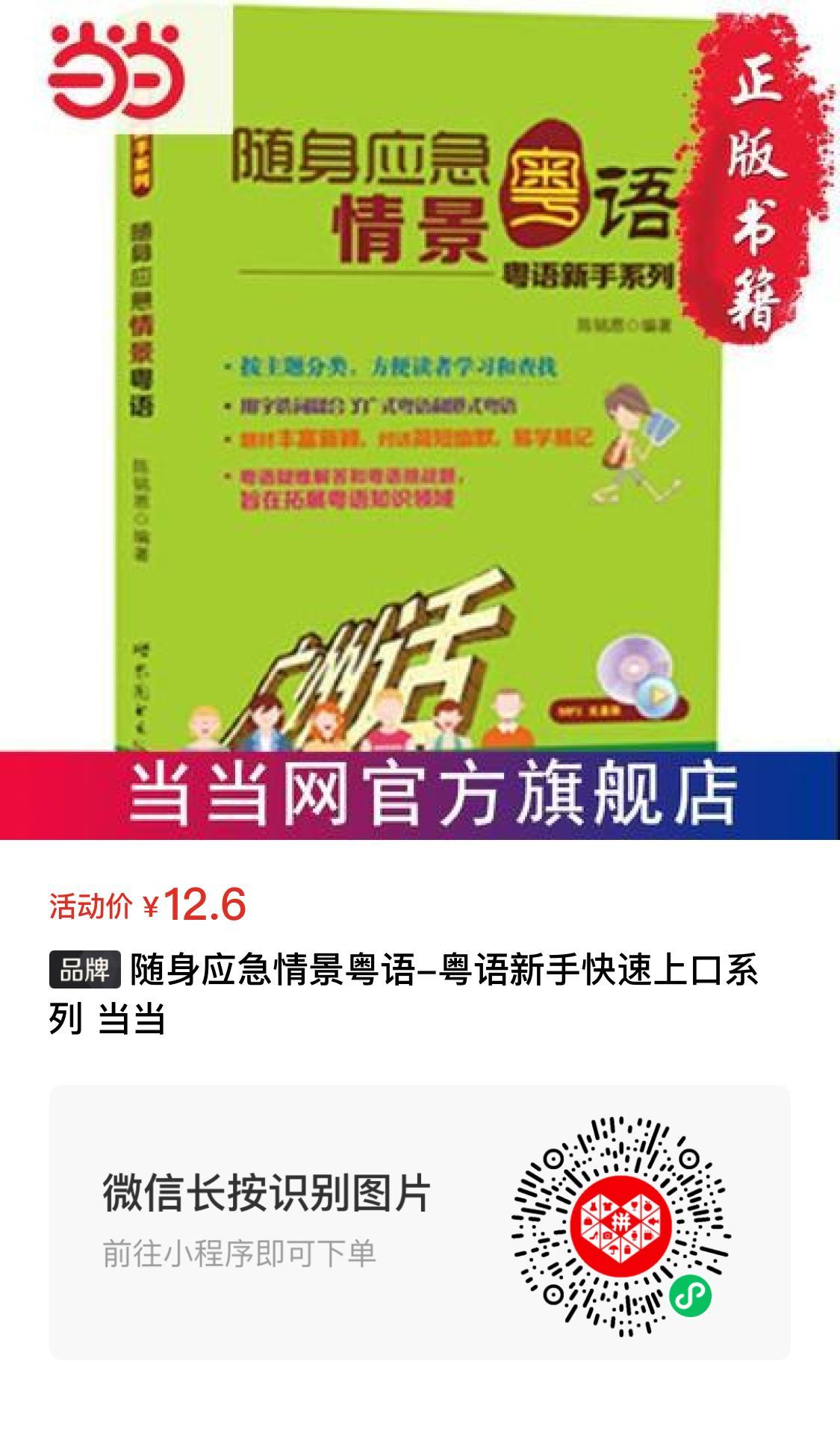 课后的文化解释比较到位,考据严谨。微信公众号和视频号“粤味调料”2022年10月6号推荐过此书随身应急情景粤语-粤语新手快速上口系列 当当
