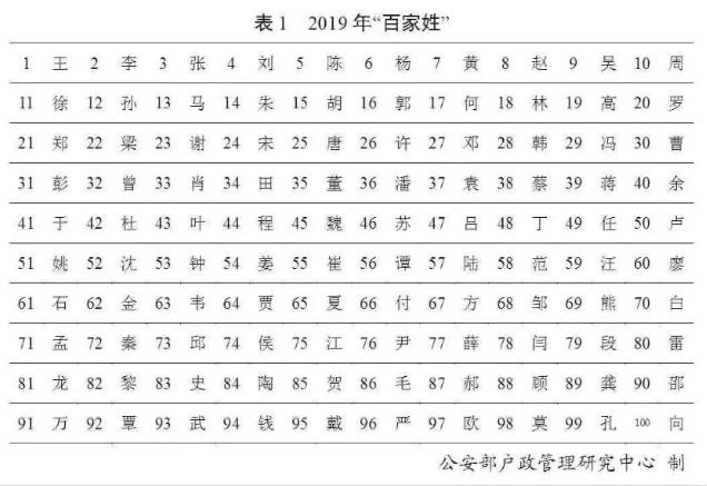 来源:中国警察网发布的2019年“百家姓”排名,按户籍人口数量排名如上表
