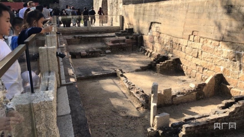 南城门外的排水沟、灶台等建筑遗存。(央广网记者 黄璐璐摄)