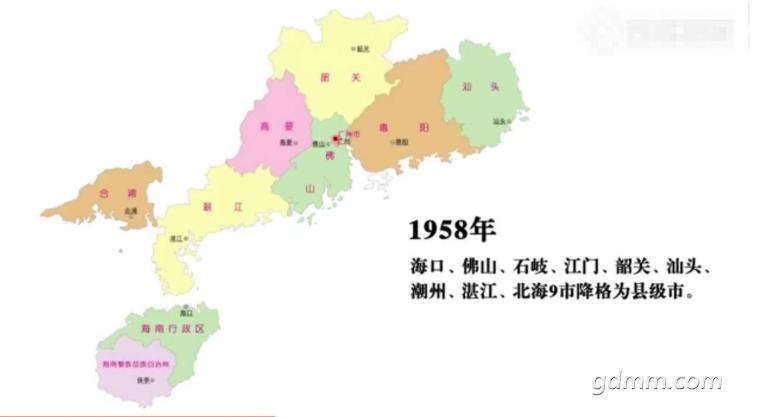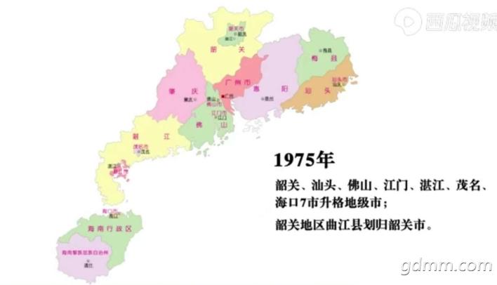 1975年,韶关、汕头、佛山、江门、茂名、湛江、海口这7市升级为地级市