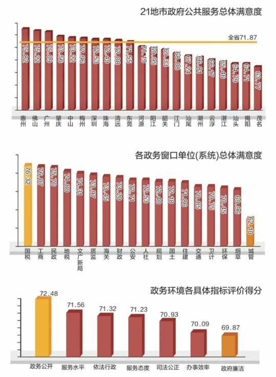 调查显示,珠三角地区政务环境好于其他区域,广州市、佛山市、惠州市位居政务环境满意度前三位。