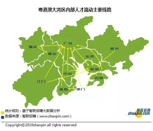 佛山、中山、江门、肇庆等市与广州流动频繁,流向广州的人才分别占其流向整个湾区的24.25%、16.14%、19.24%、24.47%;