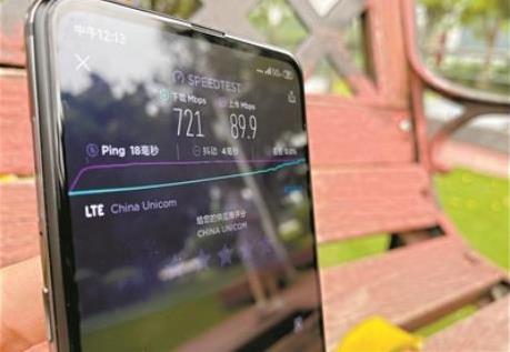记者在花城广场实测到的5G下行速率为721Mbps。