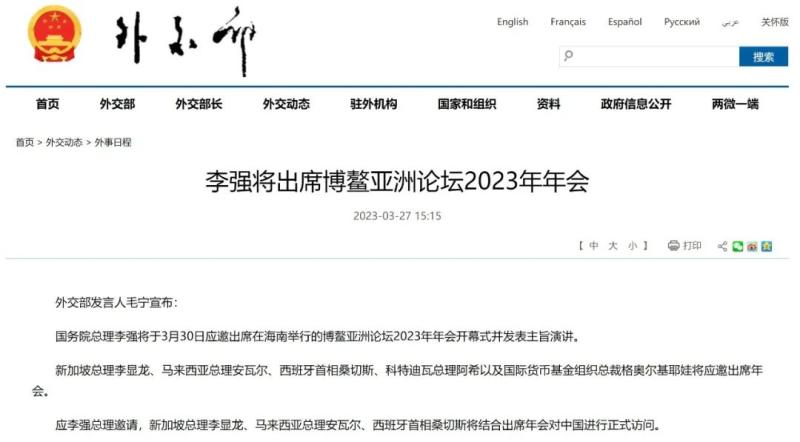 李显龙一行将于3月27日至4月1日对中国进行为期6天的访问