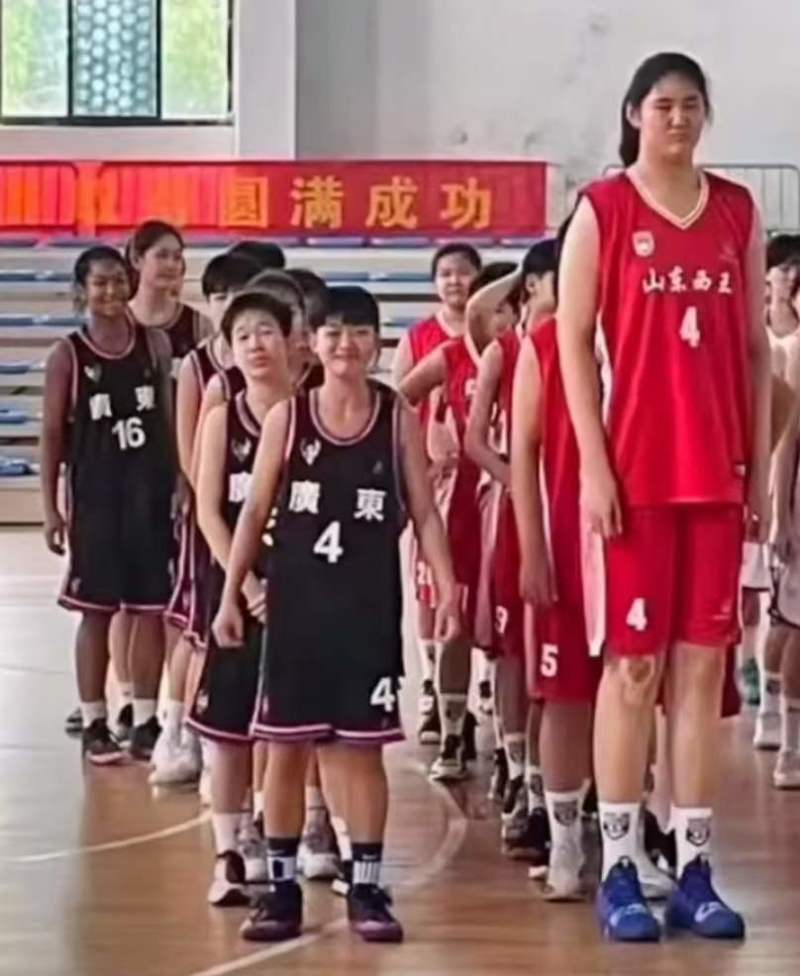 广东女篮VS山东女篮,这个高度差距估计没有悬念了,前面那个“翠花”一个顶俩