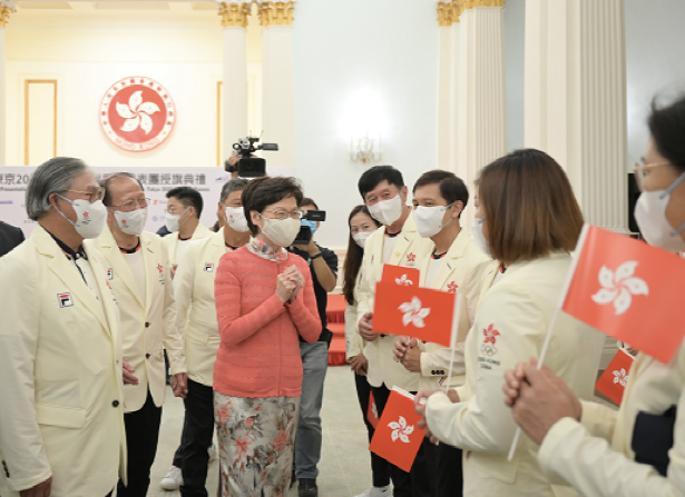 ▎ 东京奥运会中国香港体育代表团出征前,特首林郑月娥祝运动员凯旋